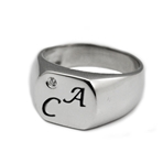 Les initiales gravées sont personnalisables. Leur finition noir laqué est mise en valeur par la pierre, soulignant ainsi la beauté de ce bijou unique. Vous pouvez choisir votre style de caractère dans la liste ci-dessous.